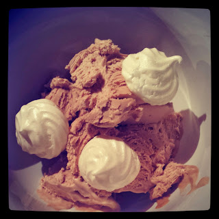 Blanda sedan ägg och socker och vispa riktigt vitt. Jag körde i maskinen 7 minuter på medelhastighet.